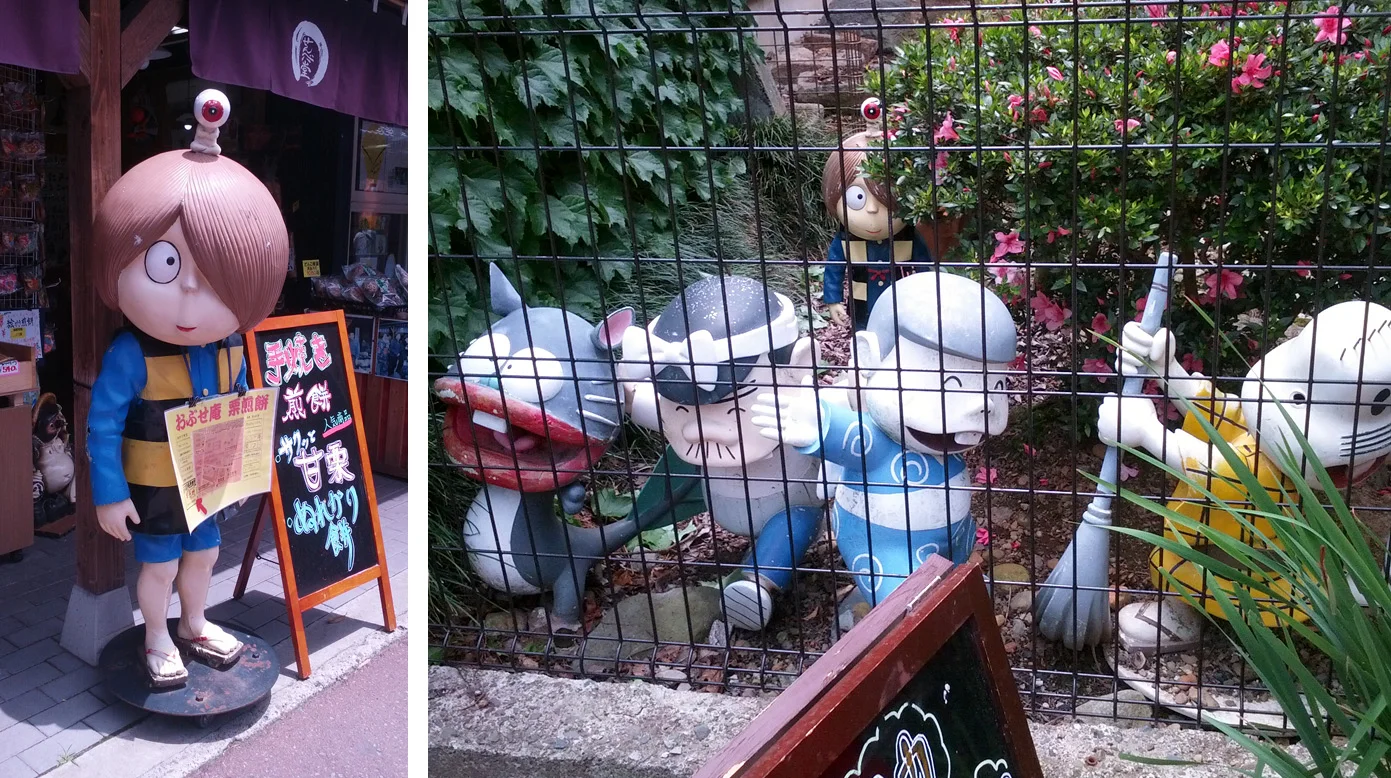 As our trip winded down, we passed by these brightly coloured statues. I didn’t recognize these anime characters but my always knowledgeable co-worker informed me that they are from an older manga called “GeGeGe no Kitaro.” Apparently, the eyeball creature is actually the boy’s father!
